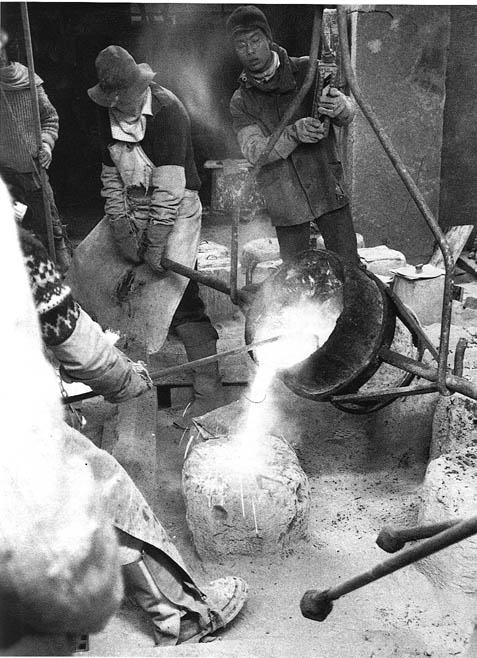 sabbia, le scatole vengono poi ricomposte e il metallo fuso viene
